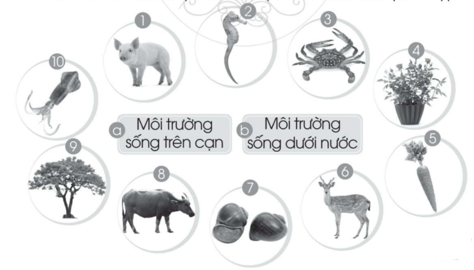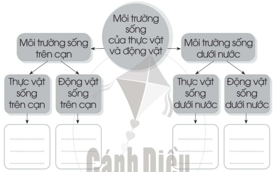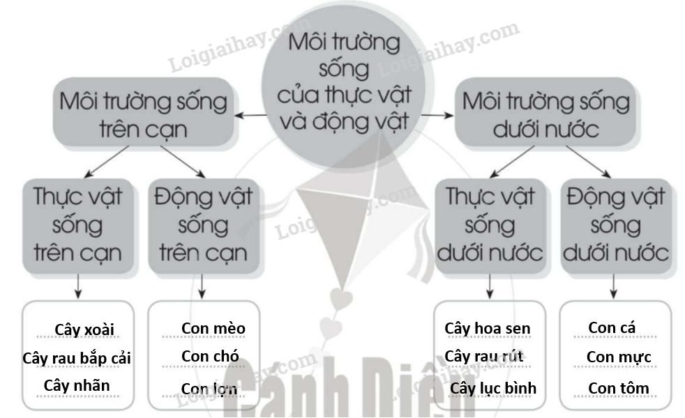 Điền tên các con vật, tên cây vào chỗ…cho phù hợp với môi trường sống của chúng