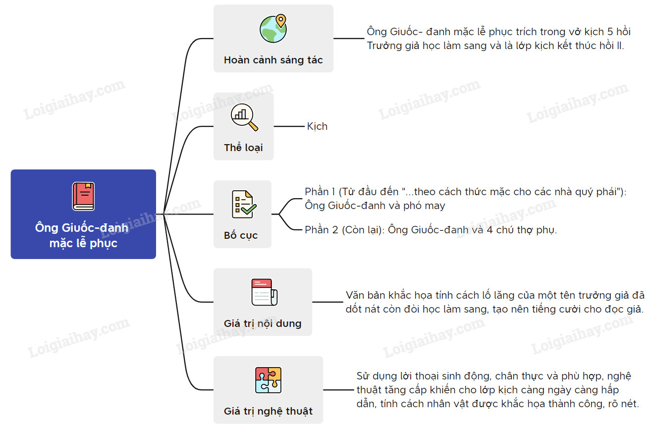 Sơ đồ tư duy văn bản Ông Giuốc-đanh mặc lễ phục: