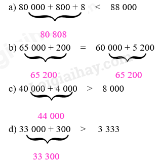 b) 65 000 + 200 .?. 60 000 + 5 200