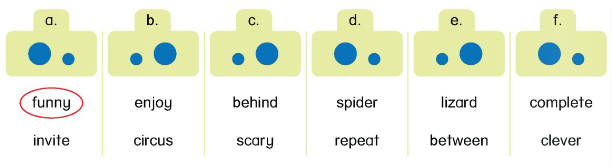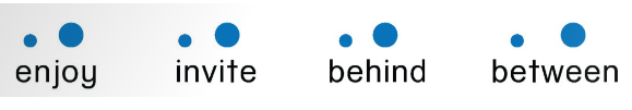 Những dấu tròn to tượng trưng cho trọng âm. Ở đây các từ đều có trọng âm rơi vào âm tiết thứ 2.