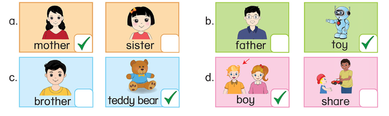 1. Listen and repeat. 2. Listen and read. 3. Listen and tick (√).