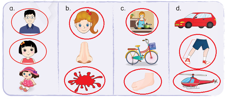 (Nghe và khoanh tròn những bức tranh có cùng âm.)