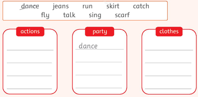 Look and write. Write the words in the correct box. Fill in the correct circle and write. Order the words.