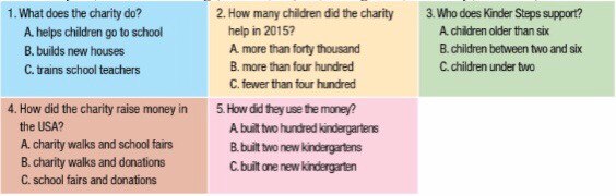 1. What does the charity do? A. helps children go to school