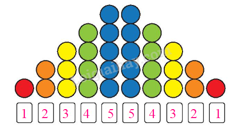 Đếm số chấm tròn ở mỗi cột dọc rồi điền số thích hợp vào ô trống.
