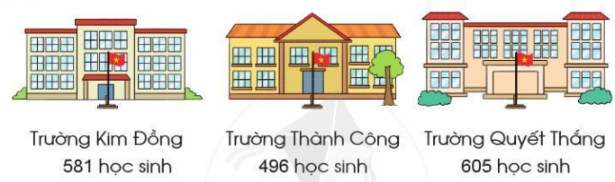 – Số học sinh trường Thành Công ít hơn số học sinh trường Quyết Thắng. (496 < 605)