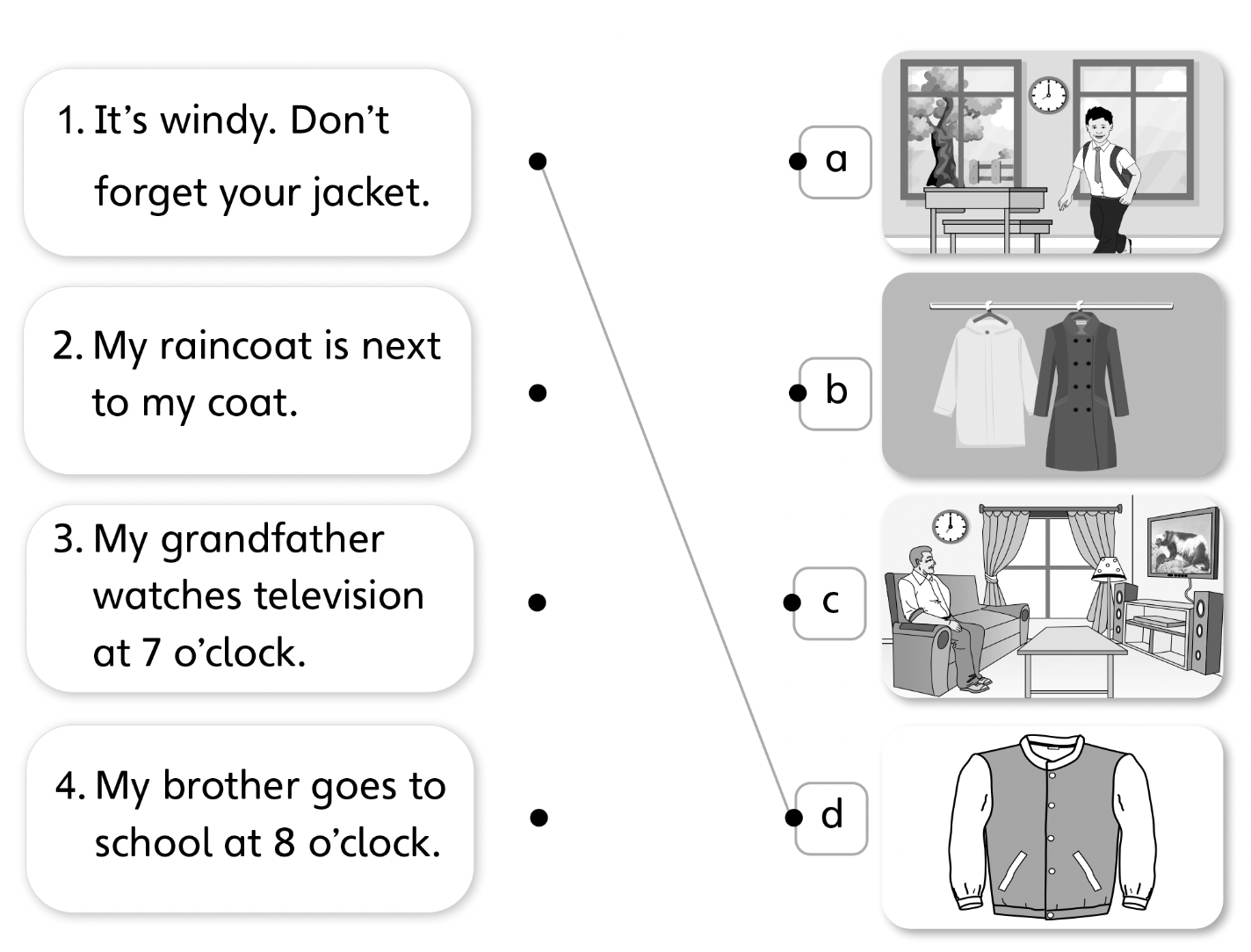 Look, listen and circle. Look, read and write. Look, read and draw lines. Ask and answer. Talk about your friends.