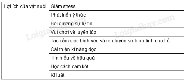 Các em kẻ bảng và điền lần lượt lợi ích của vật nuôi.