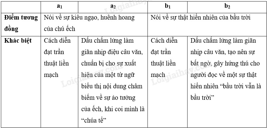 Em thích cách diễn đạt a₂ và b₂ hơn vì sự xuất hiện của dấu chấm lửng tạo ra được nhịp điệu cho câu văn, gây sự tò mò, hứng thú và tạo ra tiếng cười châm biếm, gây bất ngờ cho người đọc