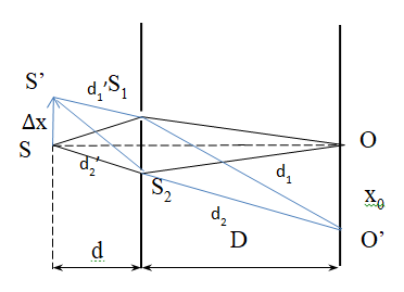 Ta có, khi dịch chuyển nguồn sáng S theo phương song song về phía S2