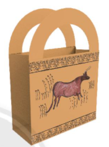Túi có dạng hình chữ nhật kèm quai xách, gam màu chủ đạo là nâu, bố cục hài hòa, cân đối