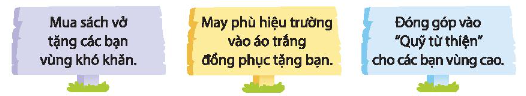 – Mua sách vở, đồ dùng học tập,… tặng các bạn có hoàn cảnh khó khăn.