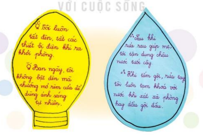 – Dự kiến những việc em sẽ làm để tiết kiệm điện, nước.