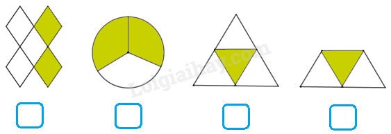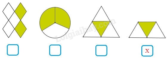 Đánh dấu (×) vào ô trống dưới hình vẽ biểu diễn phân số bằng \(\dfrac{1}{3}\):
