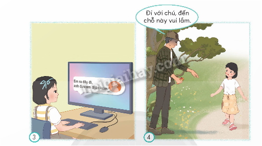 Cả 4 bức tranh đều là những tình huống có nguy cơ bị xâm hại tình dục (người đàn ông dụ dỗ trẻ em bằng việc có những hành động thân mật; cho quà, đi ăn,đi chơi)