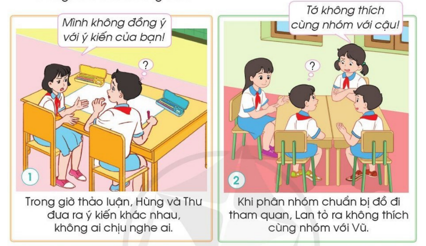 Nêu ý kiến của em về cách xử lý bất đồng trong mỗi bức tranh sau: