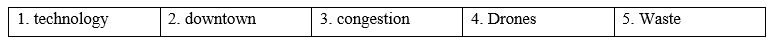 (Bạn sẽ nghe ai đó nói về các thành phố trong tương lai. Đối với mỗi câu hỏi, hãy viết câu trả lời đúng vào chỗ trống. Viết một hoặc hai từ.)