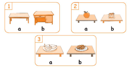 Picture a: The car is on the table. (Xe ô tô ở trên bàn.)