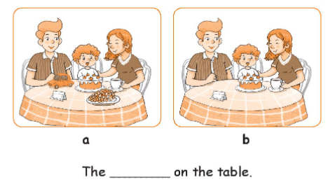b. The cake is on the table.