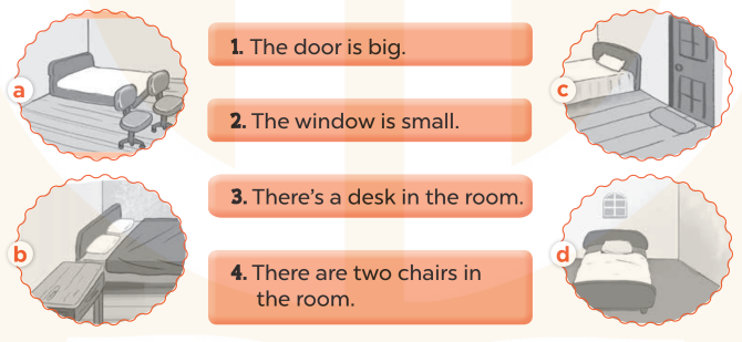 1 – c. There’s a bed in the room. (Có một chiếc giường ở trong phòng.)