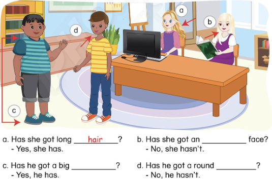 b. – Has she got an oval face? (Cô ấy có gương mặt trái xoan không?)