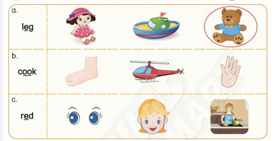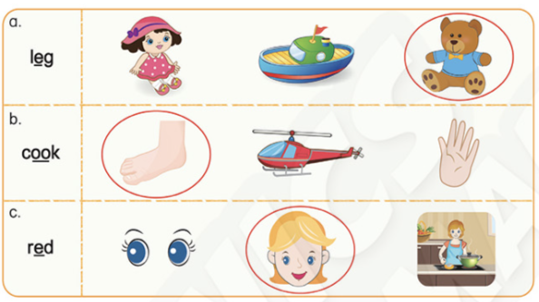 c. /e/   red (màu đỏ) – eyes (đôi mắt) – head (đầu) – cook (nấu ăn)