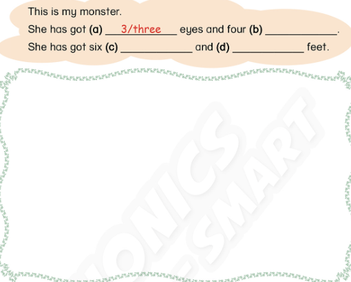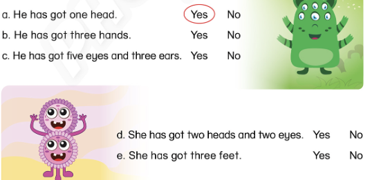 e.She has got three feet. (Cô ấy có 3 bàn chân.)