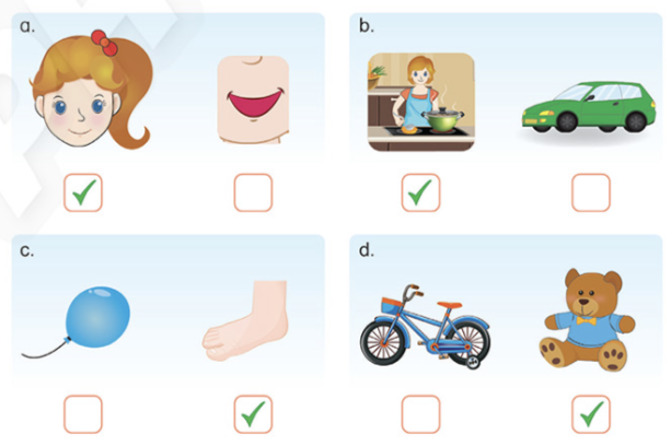 (Nghe và khoanh vào bức tranh có âm giống.)