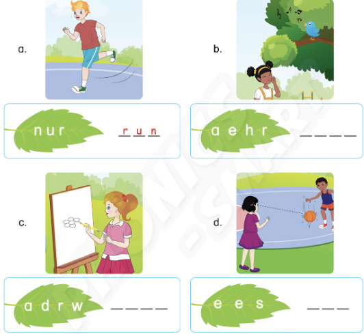 Write the words. Read and circle Yes or No. What’s missing? Write. Read and colour. Match and say. Read and complete. Listen and circle the picture with the same sound. Listen and tick. Look and unscramble the words. Read and write T or F.