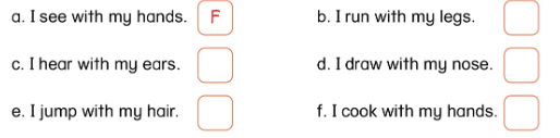 f. I cook with my hands.(Tôi nấu ăn bằng tay.)