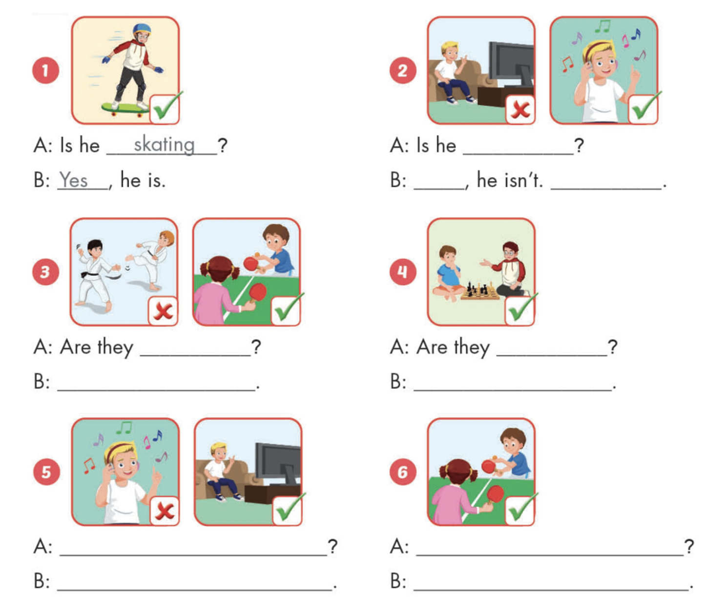 B: Ồ. Anh ấy đang trượt băng phải không?