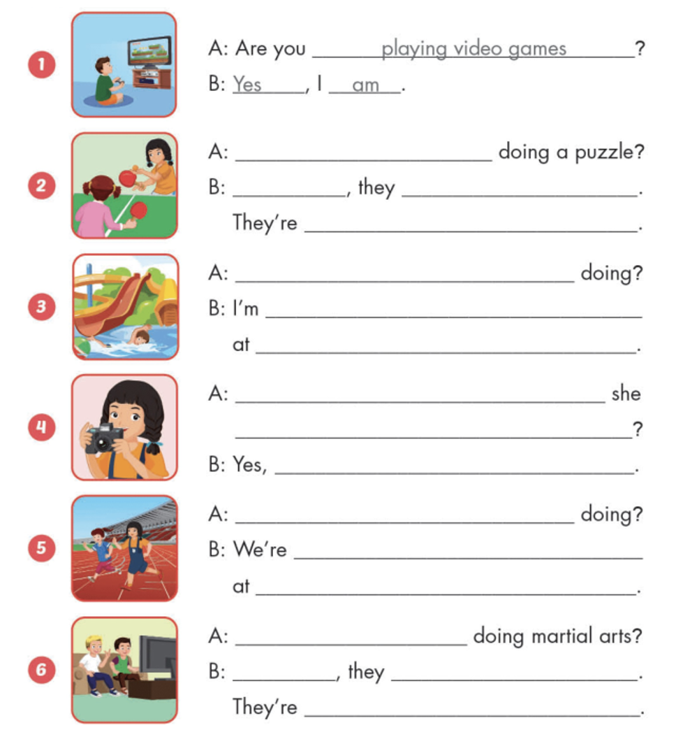 B: Không. Chúng tôi đang chơi trò chơi điện tử.