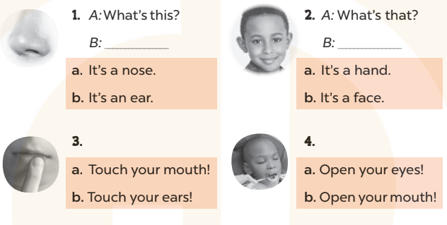 B: It’s a nose. (Nó là một chiếc mũi.)