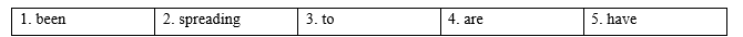 Giải thích: thì hiện tại hoàn thành tiếp diễn: S + have/ has + been + V_ing => vị trí trống điền “V_ing” => điền “spreading” – lan rộng