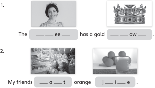 4. Listen. Look and write.