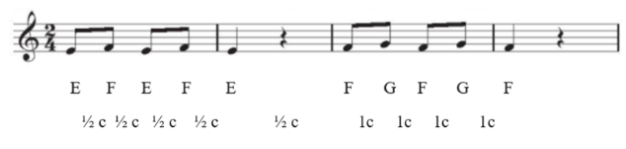 Đọc nét nhạc và chỉ ra khoảng cách cung và nửa cung giữa 2 nốt.