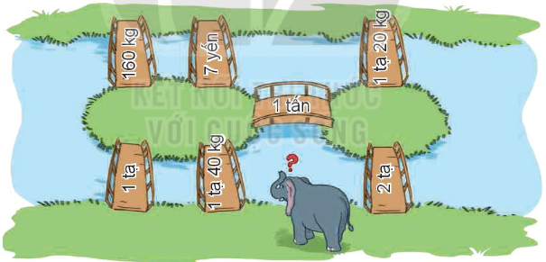 Vậy voi con không thể đi qua cây cầu ghi số đo là 1 tạ 20 kg.