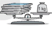 b) Quan sát tranh vẽ ta thấy hai đĩa cân thăng bằng, nên 5 quyển sách cân nặng 1 kg.