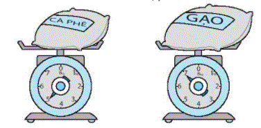 a) Túi cà phê cân nặng 5 kg. Túi gạo cân nặng 7 kg.