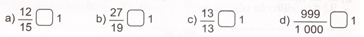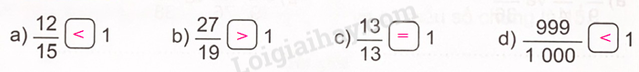 – Nếu tử số bé hơn mẫu số thì phân số bé hơn 1.