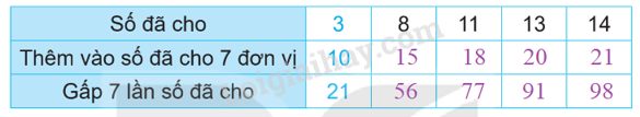 – Muốn thêm vào số đã cho 7 đơn vị ta cộng số đó với 7.