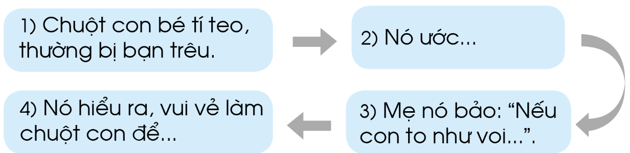 Chuột con bé tí teo mong muốn được lớn như bạn voi để các bạn đỡ trêu. Nhưng vì to như voi sợ mẹ không bế được nên vui vẻ làm chú chuột con của mẹ.