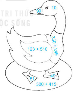 – Với các phép tính: Tô màu đen vào nơi chứa phép tính có kết quả bé nhất, tô màu xanh vào nơi chứa phép tính có kết quả lớn nhất.