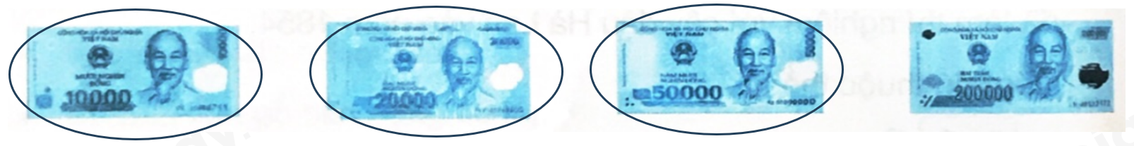 b) Khoanh những tờ tiền em định dùng để trả cho chú bán hàng.
