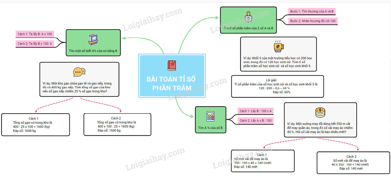 Sơ đồ tư duy: Bài toán tỉ số phần trăm lớp 5