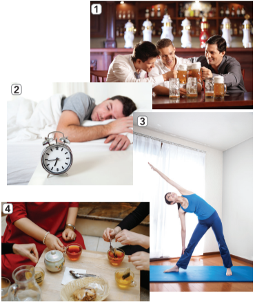 5. In groups, look at the pictures. Which of the following ways do the people in your family do to maintain a long life expectancy? Give reasons.