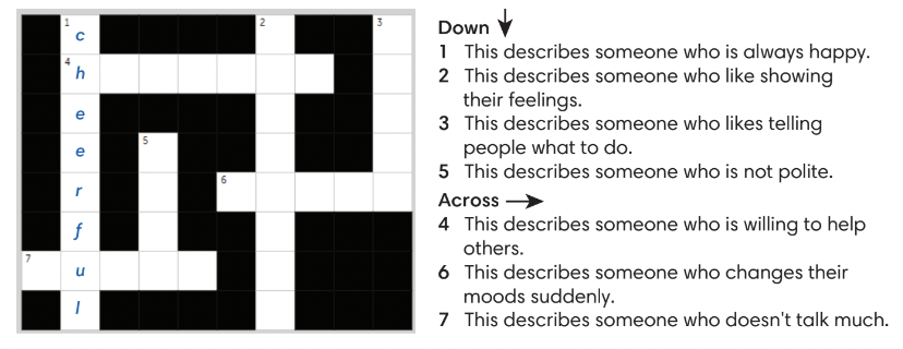 (Hoàn thành câu đố ô chữ về tính cách.)