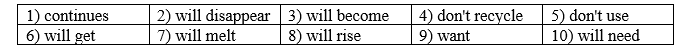 • The seas 3) _______ (become) more polluted if we 4) _______ (not/recycle) more rubbish.