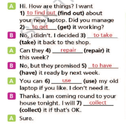 B: Không, nhưng họ hứa sẽ sửa xong vào tuần tới.