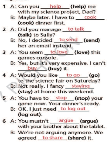 5. A: Bạn phải ngừng chơi game ngay. Bữa tối sẵn sàng rồi.